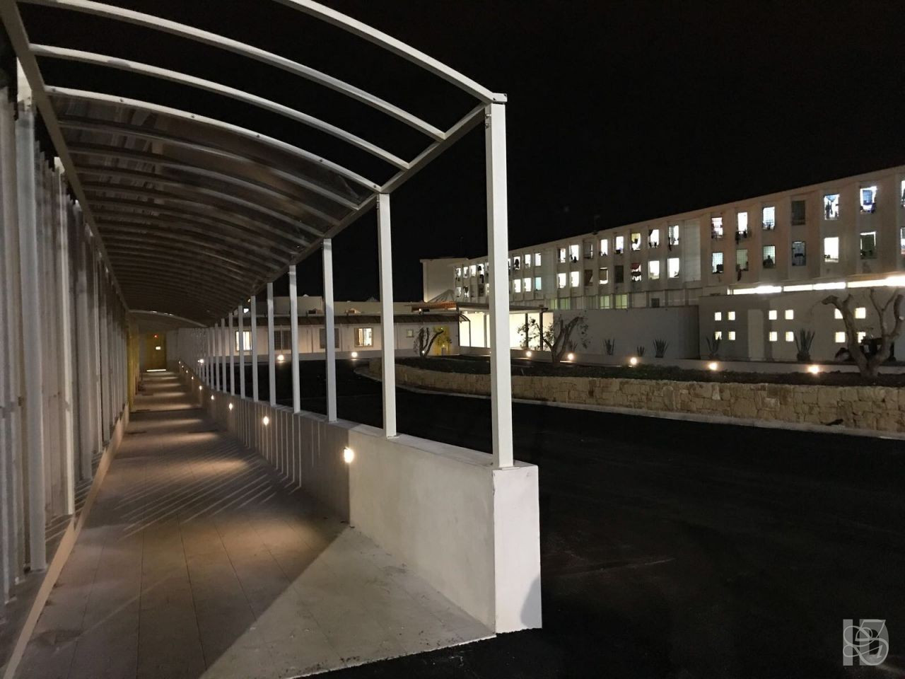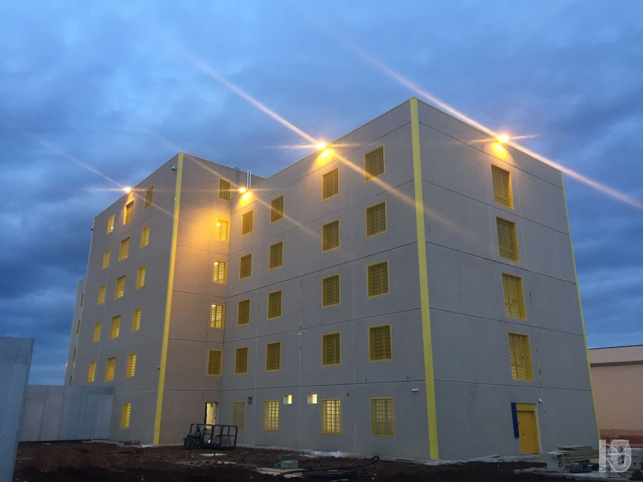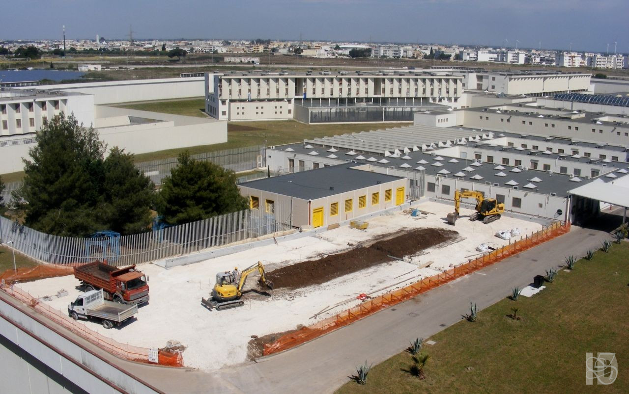Descrizione dei lavori: Il progetto riguarda l’ampliamento della Casa Circondariale e di Reclusione di Lecce, mediante la costruzione di nuovo padiglione detentivo. Il nuovo fabbricato è interamente realizzato con il sistema della prefabbricazione, setti portanti, solai alveolari e bagni prefabbricati. Si articola in altezza in un numero complessivo di sei piani di cui cinque fuori terra ed uno interrato; in pianta, invece, si sviluppa con forma rettangolare, blocco centrale adibito a servizi e due ali laterali simmetriche adibite a spazi propri della vita detentiva. La costruzione è completata dalla realizzazione di cortili passeggio per i detenuti.