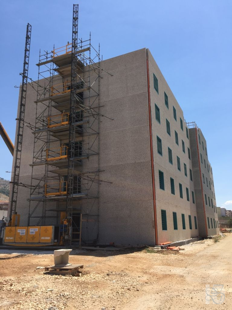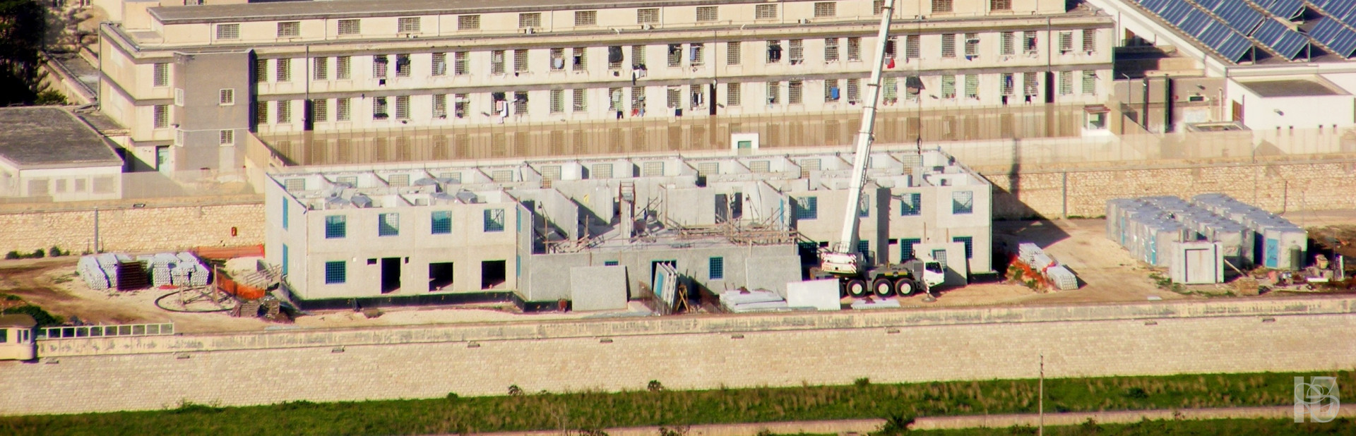 Descrizione dei lavori: Il progetto riguarda l’ampliamento presso la Casa Circondariale di Trapani, mediante la costruzione di nuovo padiglione detentivo. Il nuovo fabbricato è interamente realizzato con il sistema della prefabbricazione, setti portanti, solai alveolari e bagni prefabbricati. Si articola in altezza in un numero complessivo di cinque piani fuori terra; in pianta, invece, si sviluppa con forma rettangolare, blocco centrale adibito a servizi e due ali laterali simmetriche adibite a spazi propri della vita detentiva. La costruzione è completata dalla realizzazione di cortili passeggio per i detenuti.