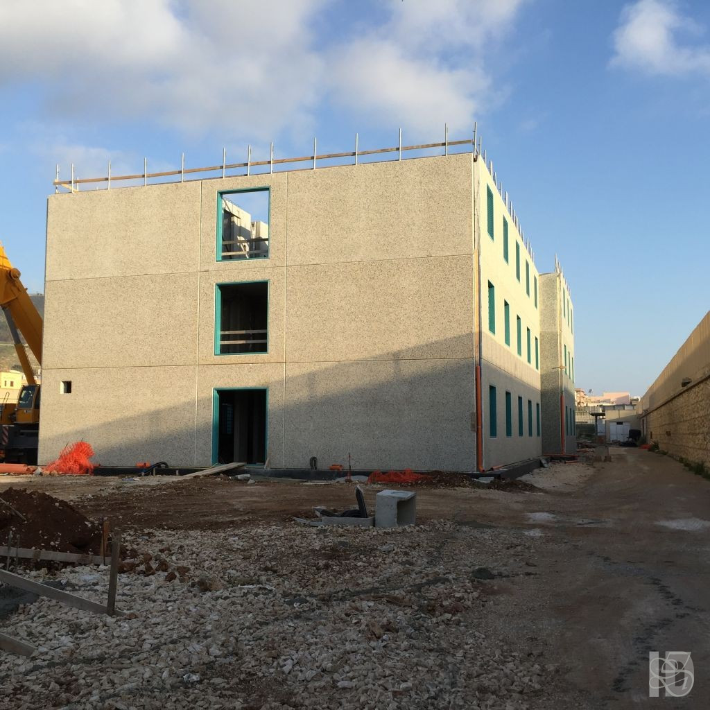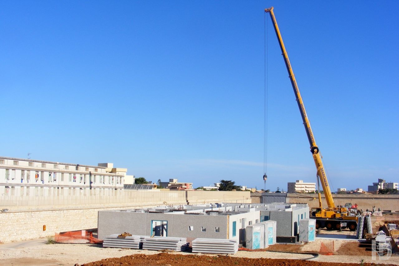 Descrizione dei lavori: Il progetto riguarda l’ampliamento presso la Casa Circondariale di Trapani, mediante la costruzione di nuovo padiglione detentivo. Il nuovo fabbricato è interamente realizzato con il sistema della prefabbricazione, setti portanti, solai alveolari e bagni prefabbricati. Si articola in altezza in un numero complessivo di cinque piani fuori terra; in pianta, invece, si sviluppa con forma rettangolare, blocco centrale adibito a servizi e due ali laterali simmetriche adibite a spazi propri della vita detentiva. La costruzione è completata dalla realizzazione di cortili passeggio per i detenuti.